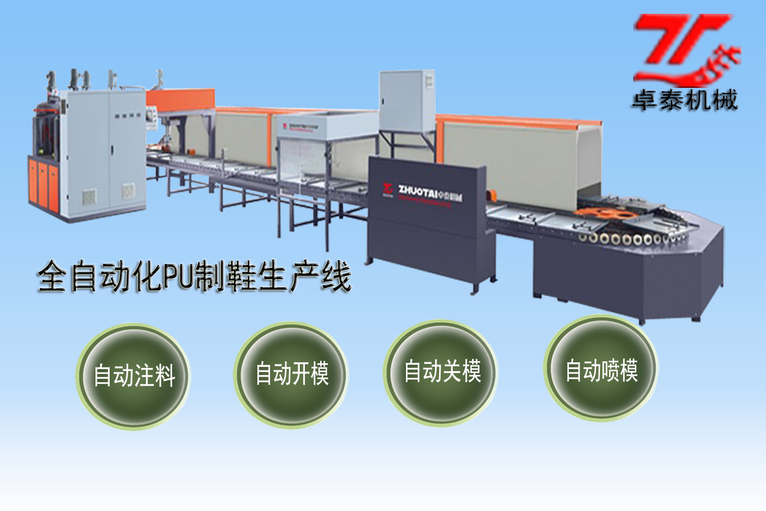 全自動(dòng)化生產(chǎn)線整機(jī) 全自動(dòng)PU制鞋生產(chǎn)線 全自動(dòng)PU鞋機(jī)生產(chǎn)線 ZTZD883全自動(dòng)智能(PU)連幫鞋生產(chǎn)設(shè)備 聚氨酯原液烘箱 ZTZD807自動(dòng)開模機(jī) ZTZD806自動(dòng)關(guān)模機(jī) ZTZD805自動(dòng)噴模機(jī) ZTZD830自動(dòng)注料主機(jī) ZT903吊臂式PU澆注機(jī) ZD913龍門式PU澆注機(jī) 雙色雙密度PU澆注機(jī)主機(jī) 新款三組份密封條澆注機(jī) 二組份全自動(dòng)三維密封條澆注機(jī) 全自動(dòng)方圓密封條澆注機(jī) 輪胎發(fā)泡機(jī) 精密聚氨酯軟泡發(fā)泡機(jī) 數(shù)控型聚氨酯高壓發(fā)泡機(jī) 硬質(zhì)發(fā)泡機(jī) 試驗(yàn)機(jī) 集成加熱高溫加色彈性體澆注機(jī) 全自動(dòng)化中溫彈性體加色澆注機(jī)(電熱式)MDI 三組份彈性體澆注機(jī) 全自動(dòng)化中溫加色彈性體澆注機(jī)(油加式)